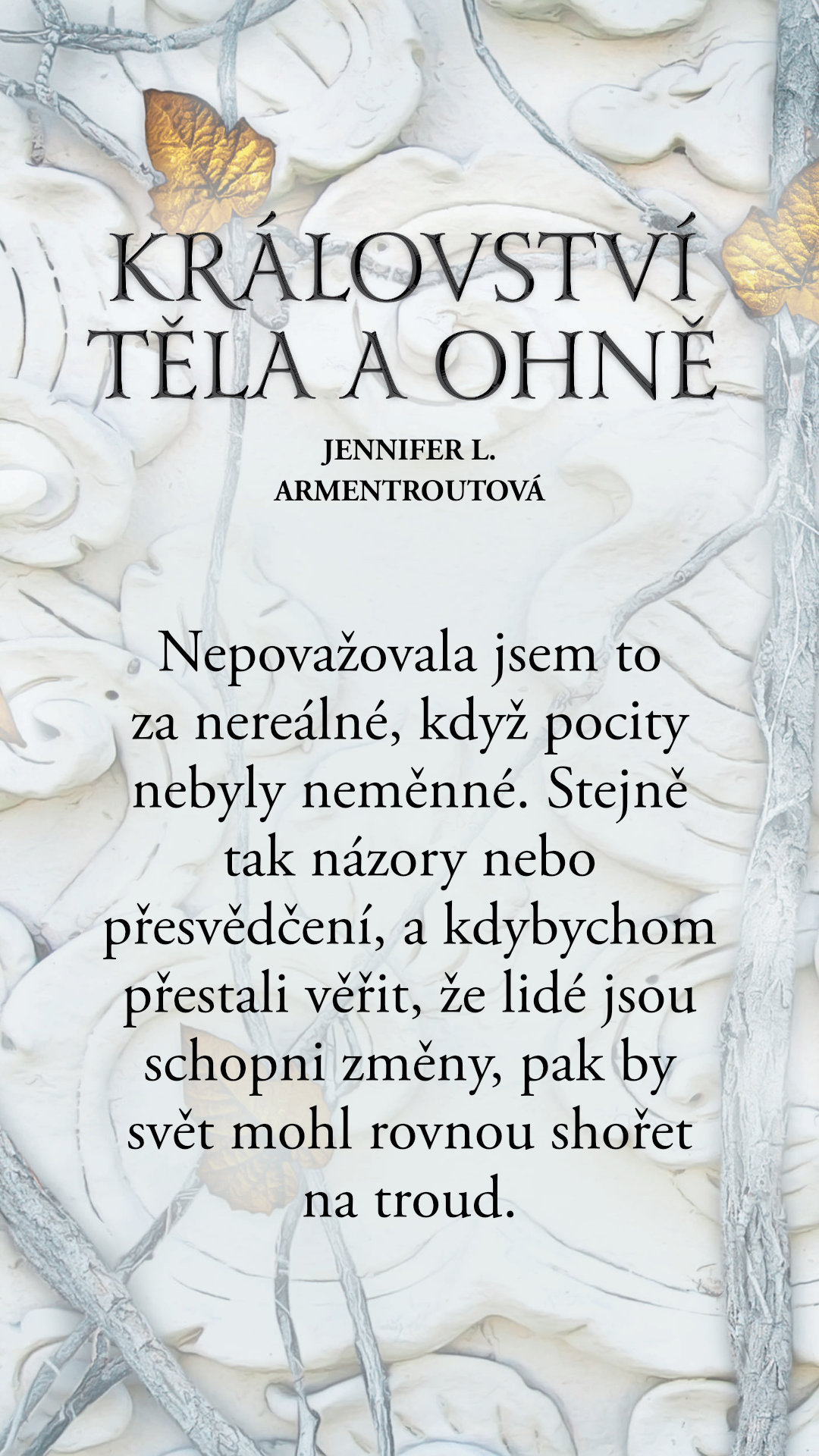 Nepovažovala jsem to za nereálné, když pocity nebyly neměnné. Stejně tak názory nebo přesvědčení, a kdybychom přestali věřit, že lidé jsou schopni změny, pak by svět mohl rovnou shořet na troud.
