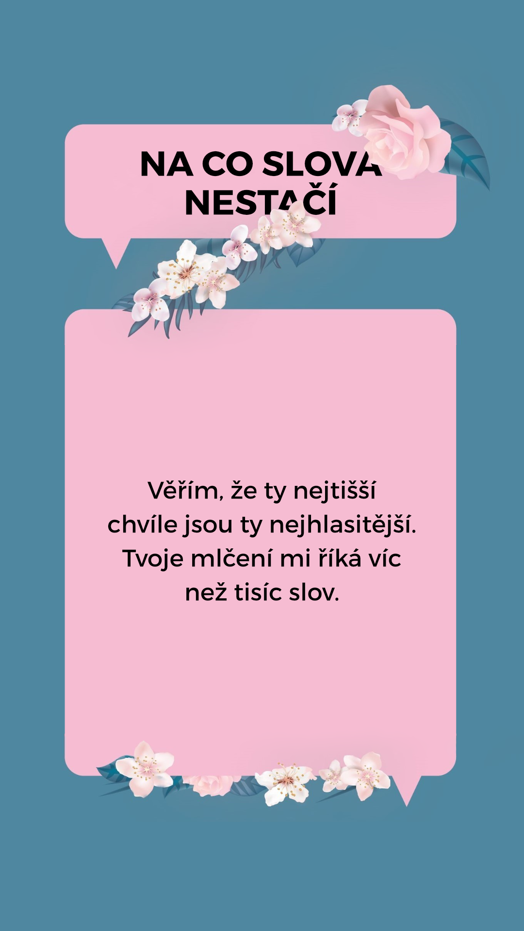 Věřím, že ty nejtišší chvíle jsou ty nejhlasitější. Tvoje mlčení mi říká víc než tisíc slov.