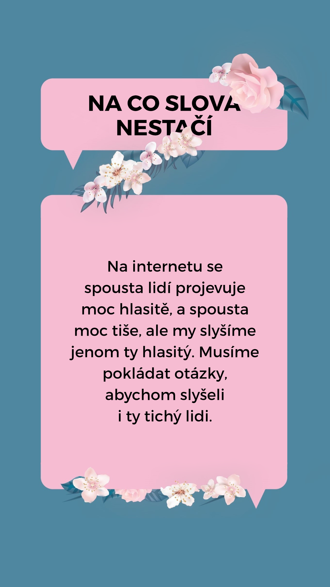 Na internetu se spousta lidí projevuje moc hlasitě, a spousta moc tiše, ale my slyšíme jenom ty hlasitý. Musíme pokládat otázky, abychom slyšeli i ty tichý lidi.
