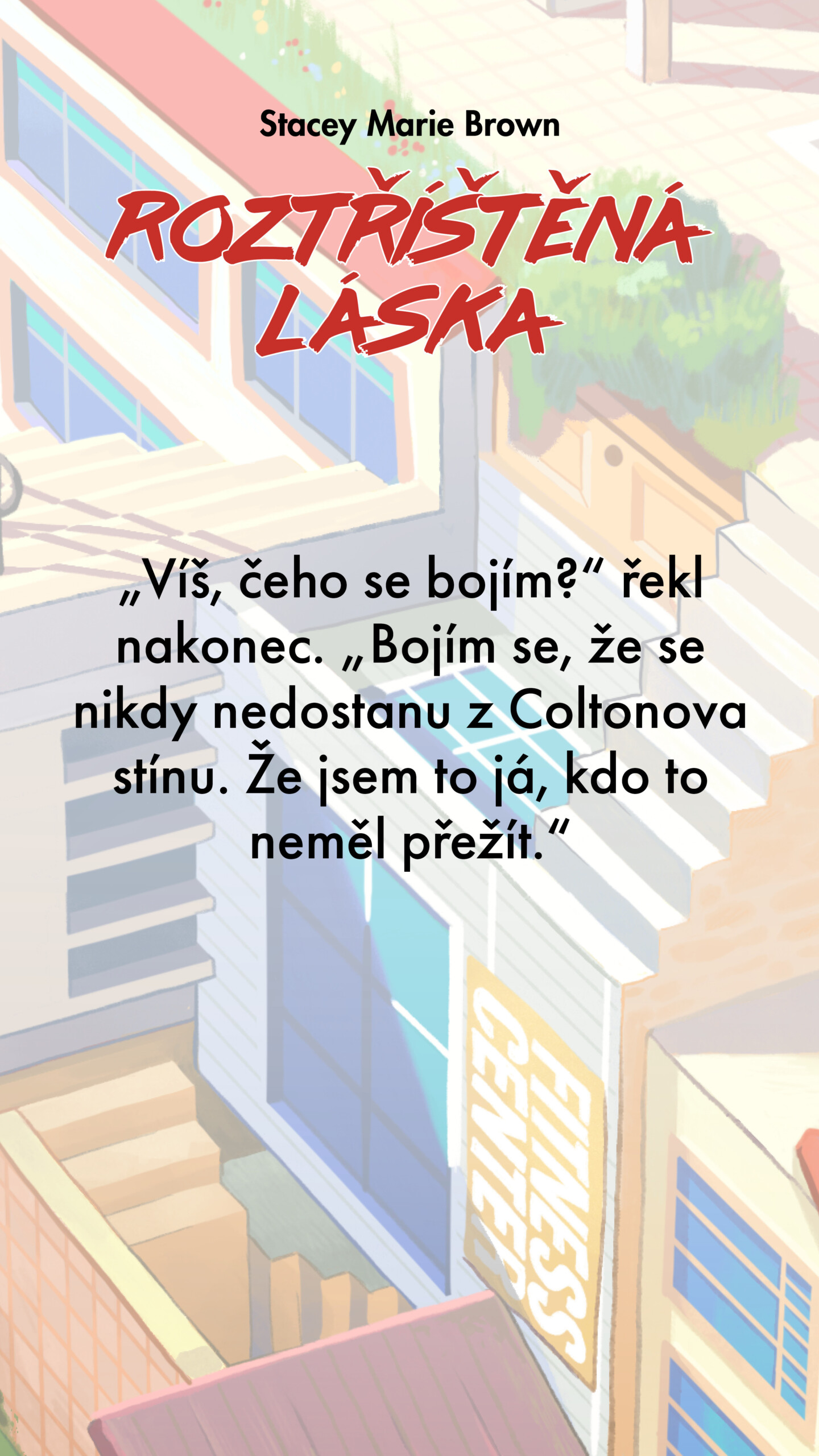 „Víš, čeho se bojím?“ řekl nakonec. „Bojím se, že se nikdy nedostanu z Coltonova stínu. Že jsem to já, kdo to neměl přežít.“