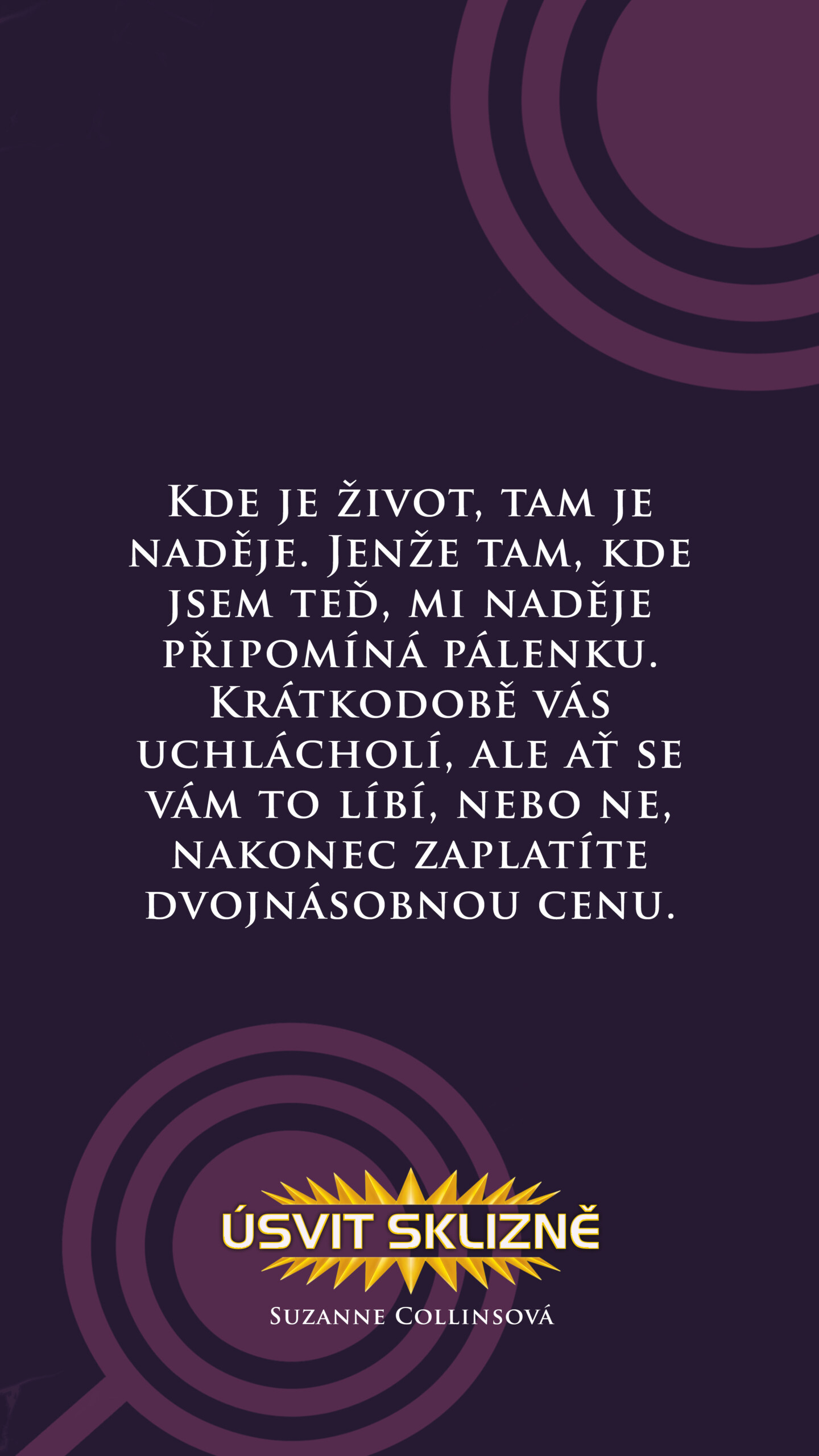 Začíná Den sklizně padesátého ročníku Hladových her a všechny kraje Panemu svírá strach. Letos, u příležitosti druhých čtvrtoher, bude do Kapitolu odveden dvojnásobný počet splátců. Haymitch Abernathy z Dvanáctého kraje chce jediné – přečkat den a jít za milovanou dívkou. Když ale s třemi dalšími splátci vyvolají jeho jméno, musí dát svým snům sbohem. Hry začínají a Haymitch rychle pochopí, že je předurčený k prohře. Přesto se nehodlá vzdát… Podaří se mu svůj boj přenést daleko za hranice smrtící arény?