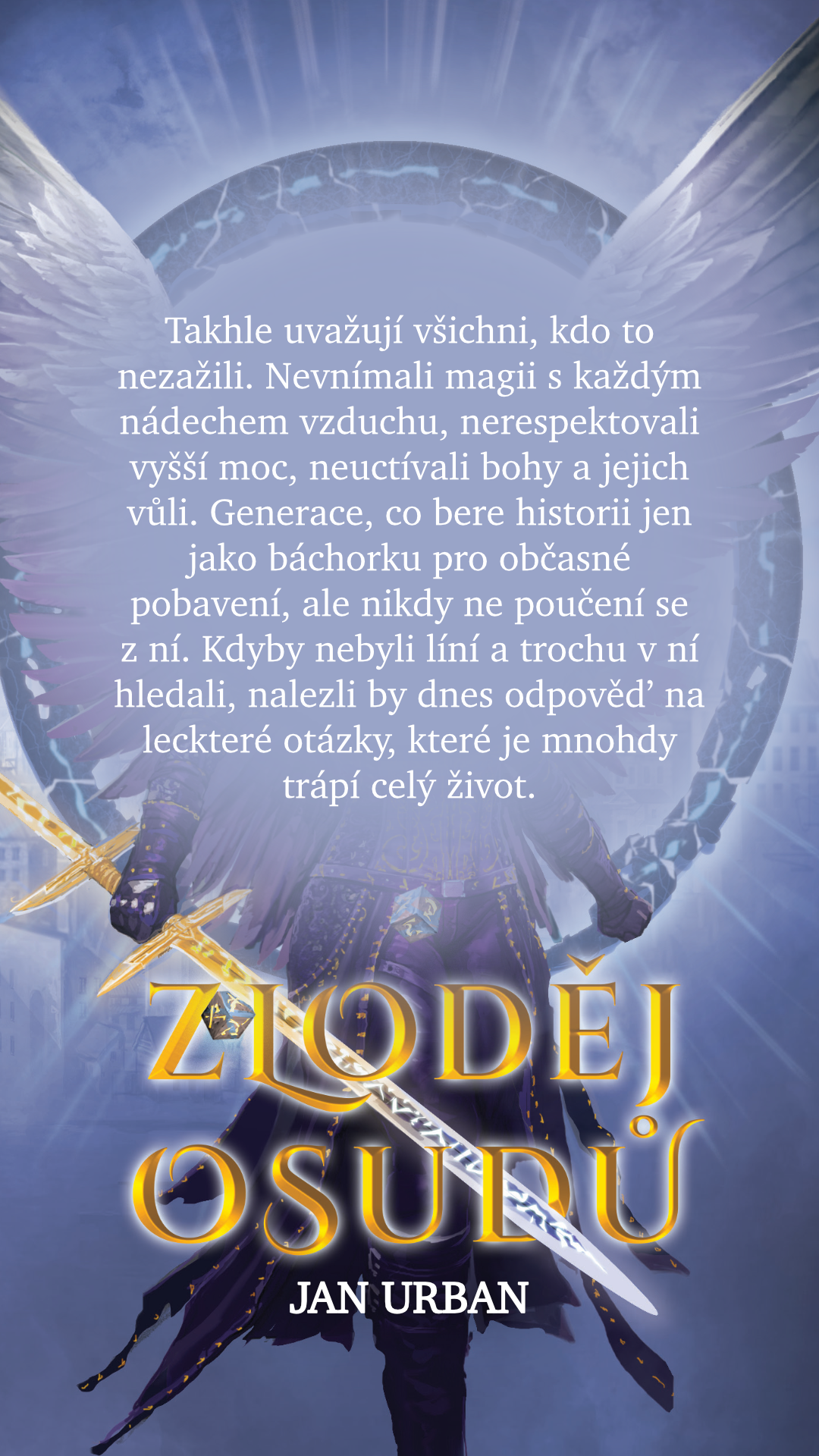 Takhle uvažují všichni, kdo to nezažili. Nevnímali magii s každým nádechem vzduchu, nerespektovali vyšší moc, neuctívali bohy a jejich vůli. Generace, co bere historii jen jako báchorku pro občasné pobavení, ale nikdy ne poučení se z ní. Kdyby nebyli líní a trochu v ní hledali, nalezli by dnes odpověď na leckteré otázky, které je mnohdy trápí celý život.