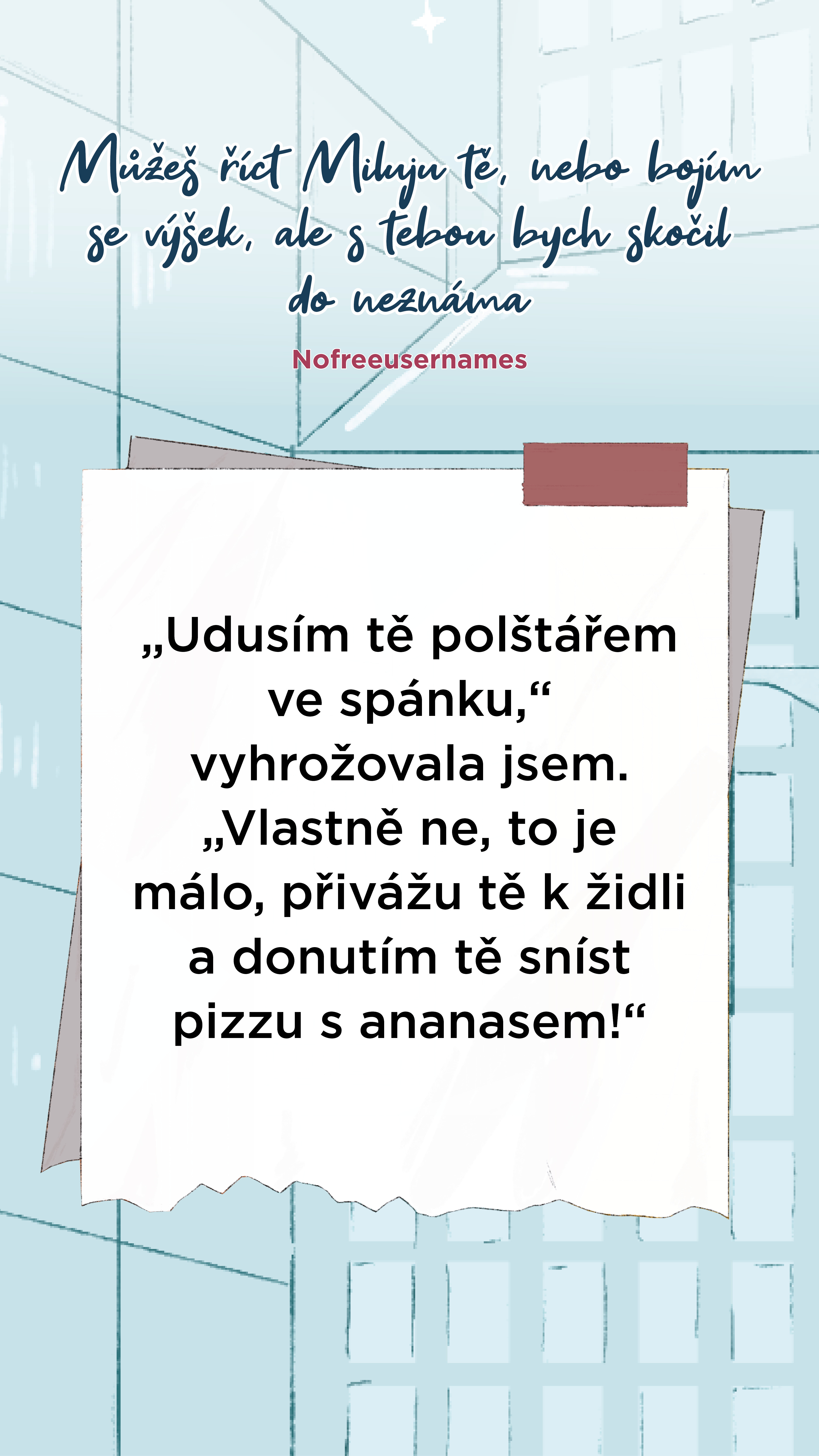 Můžeš říct Miluju tě, nebo bojím se výšek, ale s tebou bych skočil do neznáma (Nofreeusernames)