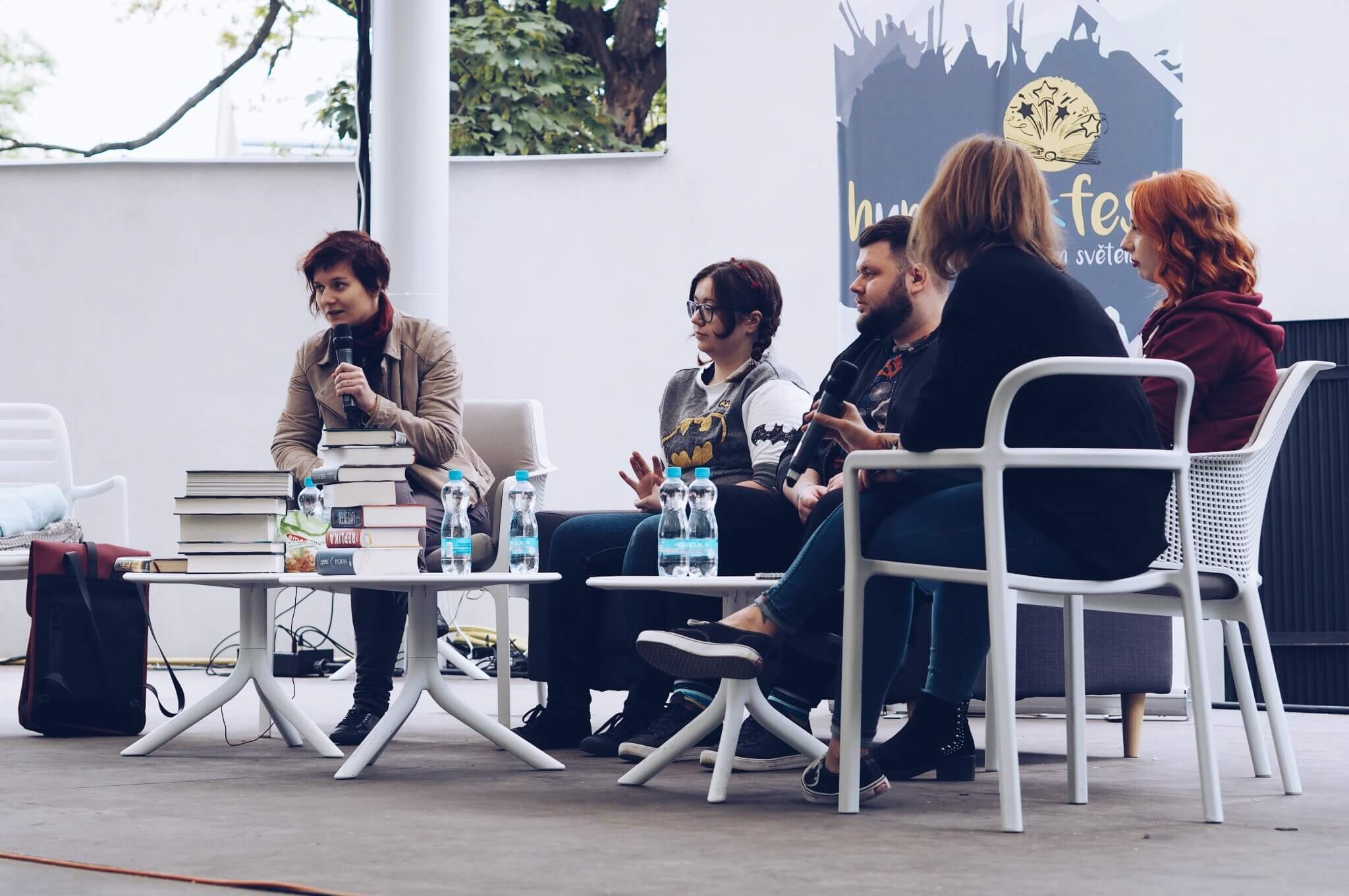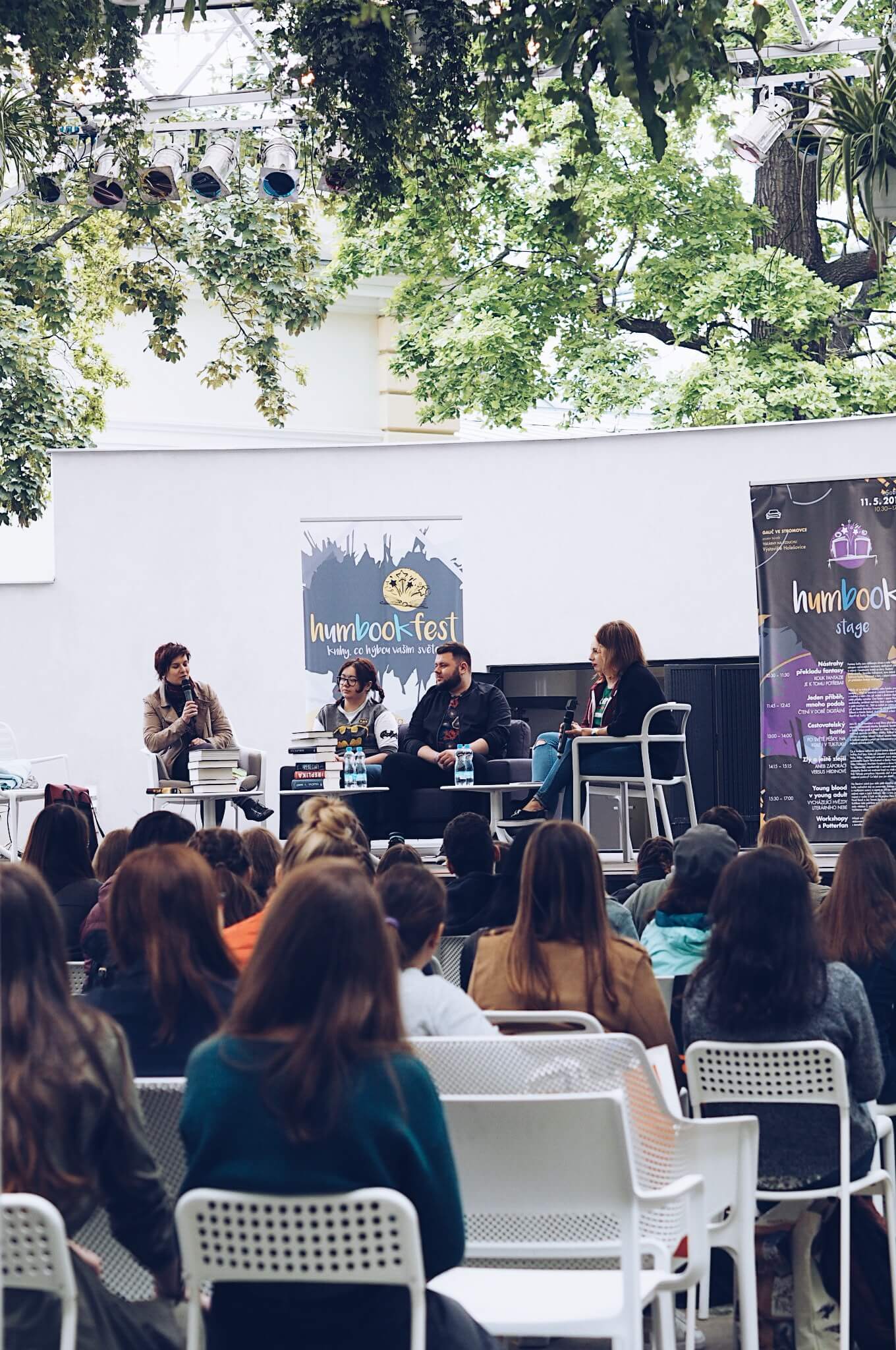 Druhá HumbookStage byla top strop, hustodémonická, superkalifradžilistikexpialidózní, nadupanózní, supermegafoxyawesomehot, topovka, fest dobrá. (Tyhle výrazy jsme vytáhli s ankety na našem Instagramu, kde jsme se ptali, co se teď říká, když je něco boží 😁) Tentokrát nám střechu nad hlavou poskytl Gauč ve Stromovce (kde to vypadalo jako na svatbě Belly a Edwarda 😂) a až na závěrečnou bouřku a povodeň (alespoň bylo trochu vzrůšo) se podařilo i počasí. V programu se představily překladatelky fantasy, mladí autoři young adult, kluci cestovatelé, holky z digitálu a HumbookTeam, nechyběli Potterfani, instagraf a teplý čas servíroval celý den Loyd (ten malinový s pepřem byl top!) Na závěr došlo i na vyhlášení Hvězdy inkoustu.